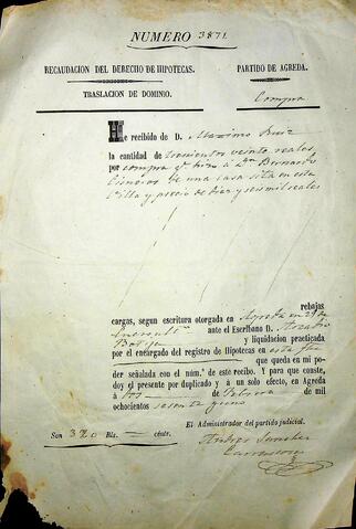 1861-02-02 Recaudación del Derecho de Hipotecas -Partido de Ágreda - Traslación de Dominio - Compra